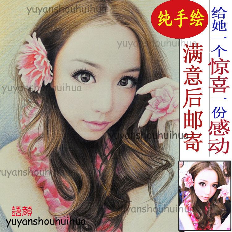纯手绘人像铅笔素描头像人工代画照片彩铅人物画像定制情人礼物热门设计联盟服务商