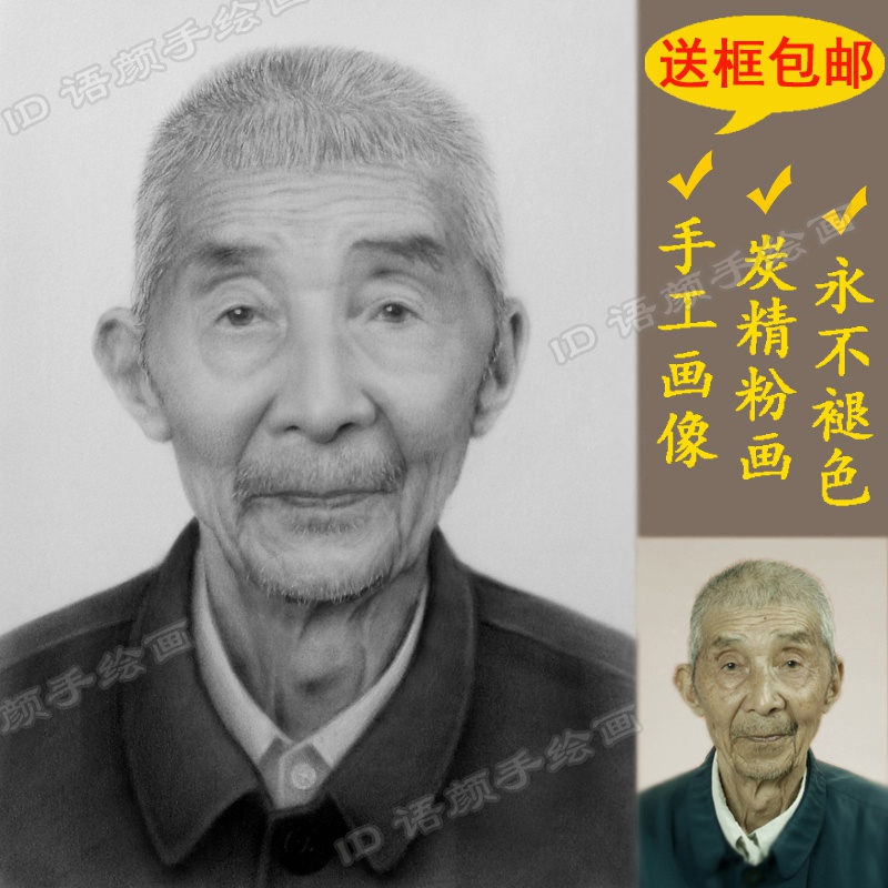 炭粉画肖像画定制 碳精粉画老人遗像全手工黑白头像手绘画照片热门设计联盟服务商