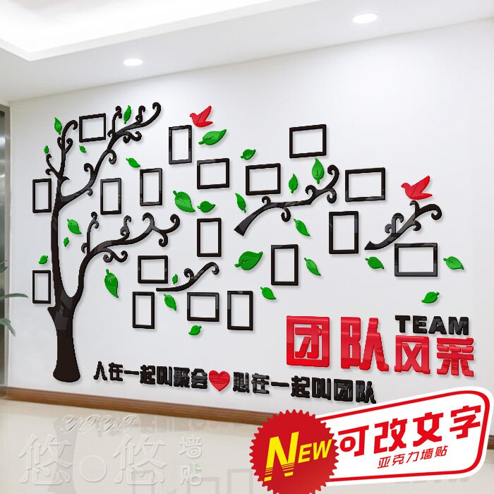 亚克力办公室会议室立体墙贴3d企业文化墙励志团队风采大树照片。热门设计联盟服务商