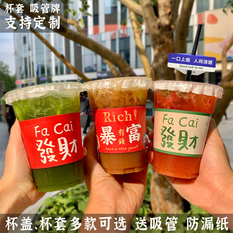 网红暴打柠檬茶杯子一次性带盖商用500ml饮品奶茶咖啡pet塑料热门设计联盟服务商