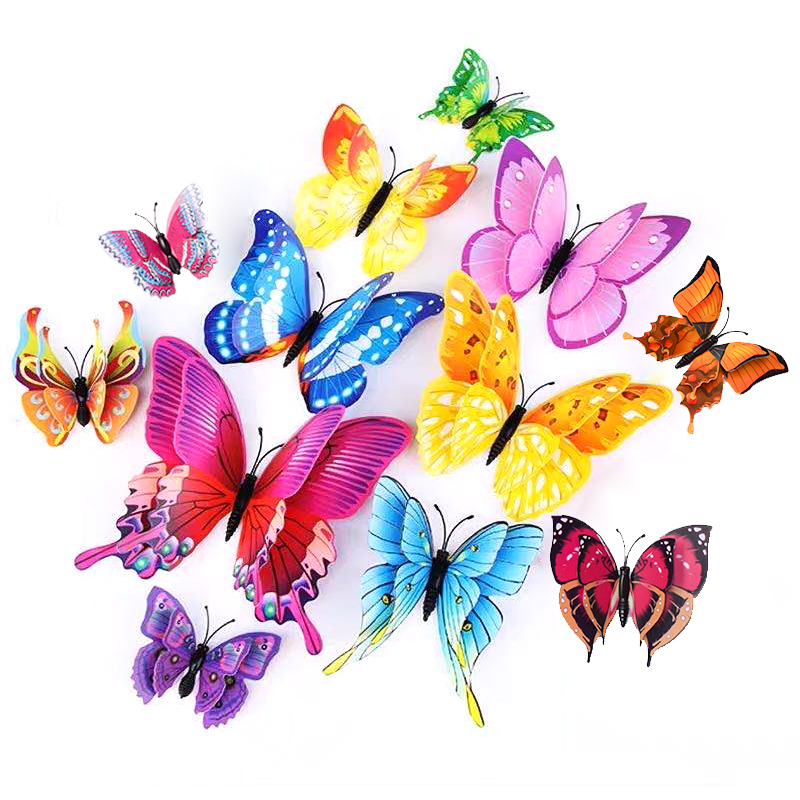 3D立体双层仿真蝴蝶装饰墙贴客厅卧室儿童房墙面装饰品自粘冰箱贴热门设计联盟服务商